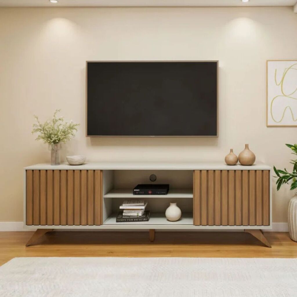 As portas deslizantes garantem fácil acesso e melhor aproveitamento do espaço, enquanto os nichos amplos facilitam a organização do dia a dia. Um rack robusto, funcional e elegante, perfeito para valorizar sua sala de estar 🏡✨