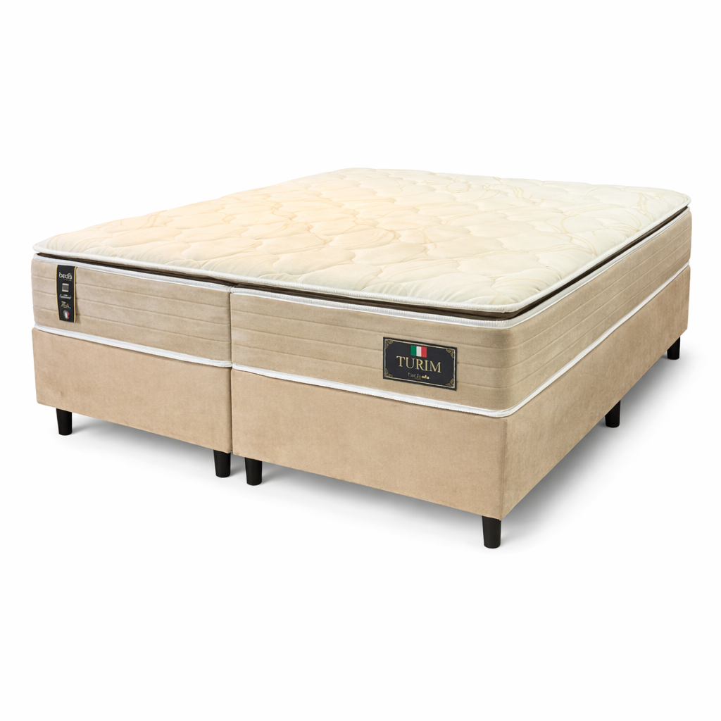 Desça a página e aproveite para comprar junto as bases bipartidas bege, que harmoniza perfeitamente com o colchão, oferecendo mais conforto, estabilidade e sofisticação ao seu quarto.