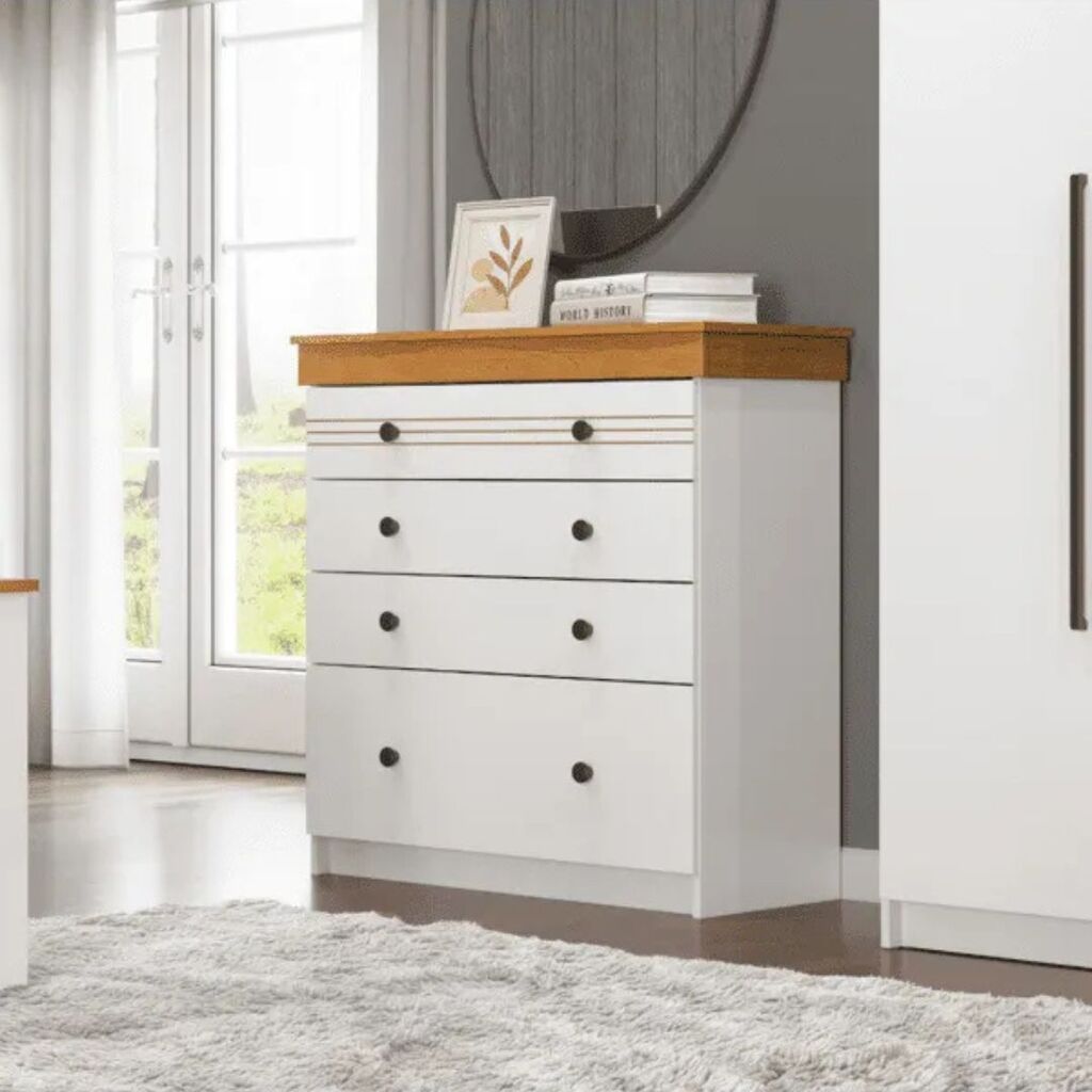 Com 4 gavetas espaçosas, você tem espaço ideal para roupas, acessórios e itens pessoais, mantendo tudo sempre ao alcance e em ordem.
