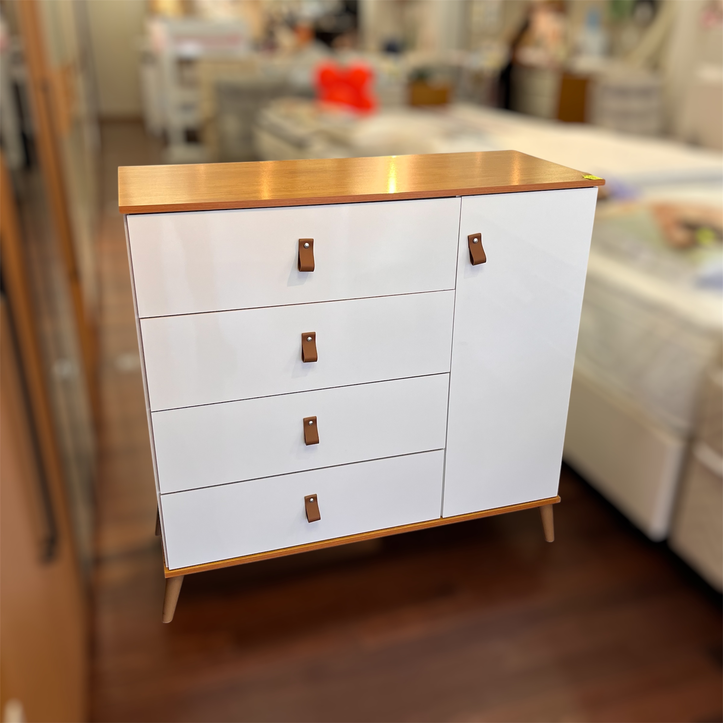 Com 4 gavetas espaçosas, 1 porta lateral e 1 prateleira interna, oferece o espaço ideal para guardar roupas, acessórios, documentos e objetos do dia a dia com praticidade.