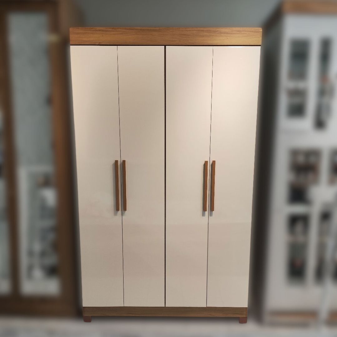 Com 4 portas, 2 gavetas e prateleiras bem distribuídas, o espaço interno é excelente para manter roupas e acessórios sempre organizados. As gavetas possuem corrediças telescópicas, que proporcionam um deslizamento suave e maior vida útil ao móvel. Ideal para quem deseja um guarda-roupa compacto por fora, mas muito eficiente por dentro!