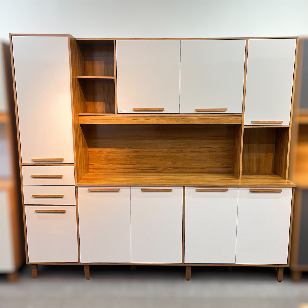 Com 9 portas bem distribuídas e 2 gavetas com corrediças telescópicas, você ganha praticidade, organização e fácil acesso a tudo que precisa no dia a dia.