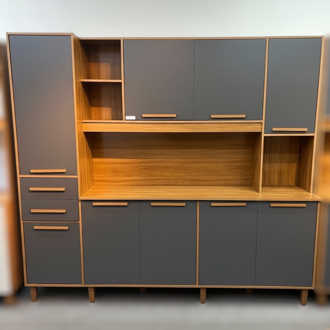 A Cozinha Dubai é perfeita para quem busca espaço, resistência e modernidade no ambiente. Produzida em 100% MDF, oferece alta durabilidade e um visual elegante que transforma sua cozinha em um espaço funcional e sofisticado.