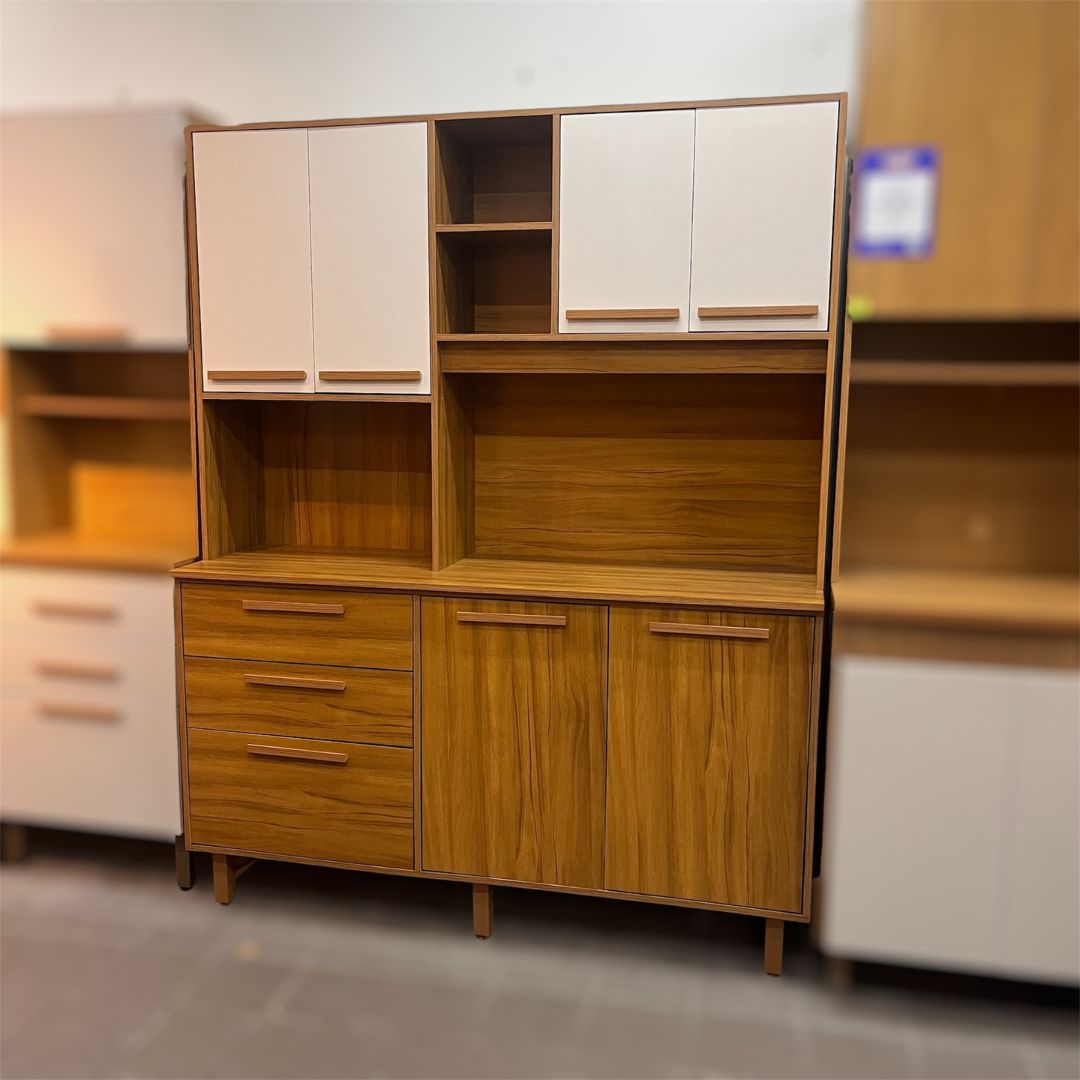 Fabricada em MDP de 15 mm com pintura de alta resistência, a New Montevideu conta com 7 portas espaçosas, 2 gavetas com corrediças metálicas, prateleiras internas bem distribuídas e pés com regulagem, garantindo estabilidade e durabilidade no uso diário.