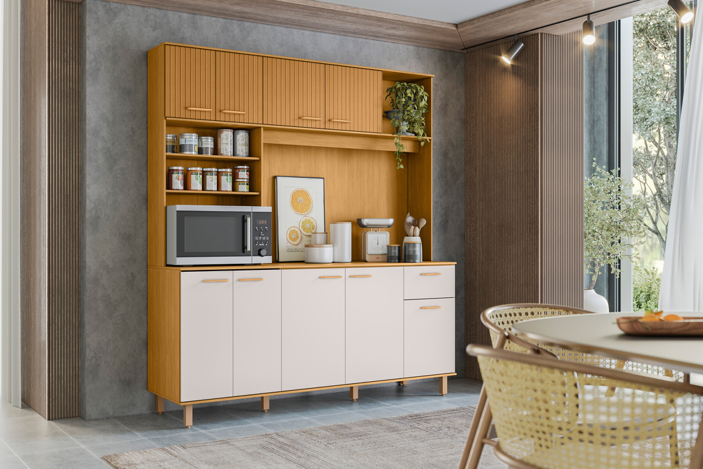 O Armário de Cozinha Núria é a escolha ideal para quem busca praticidade, beleza e qualidade em um só móvel. Com design moderno e funcional, ele oferece amplo espaço para organização, trazendo mais elegância e praticidade para sua cozinha.