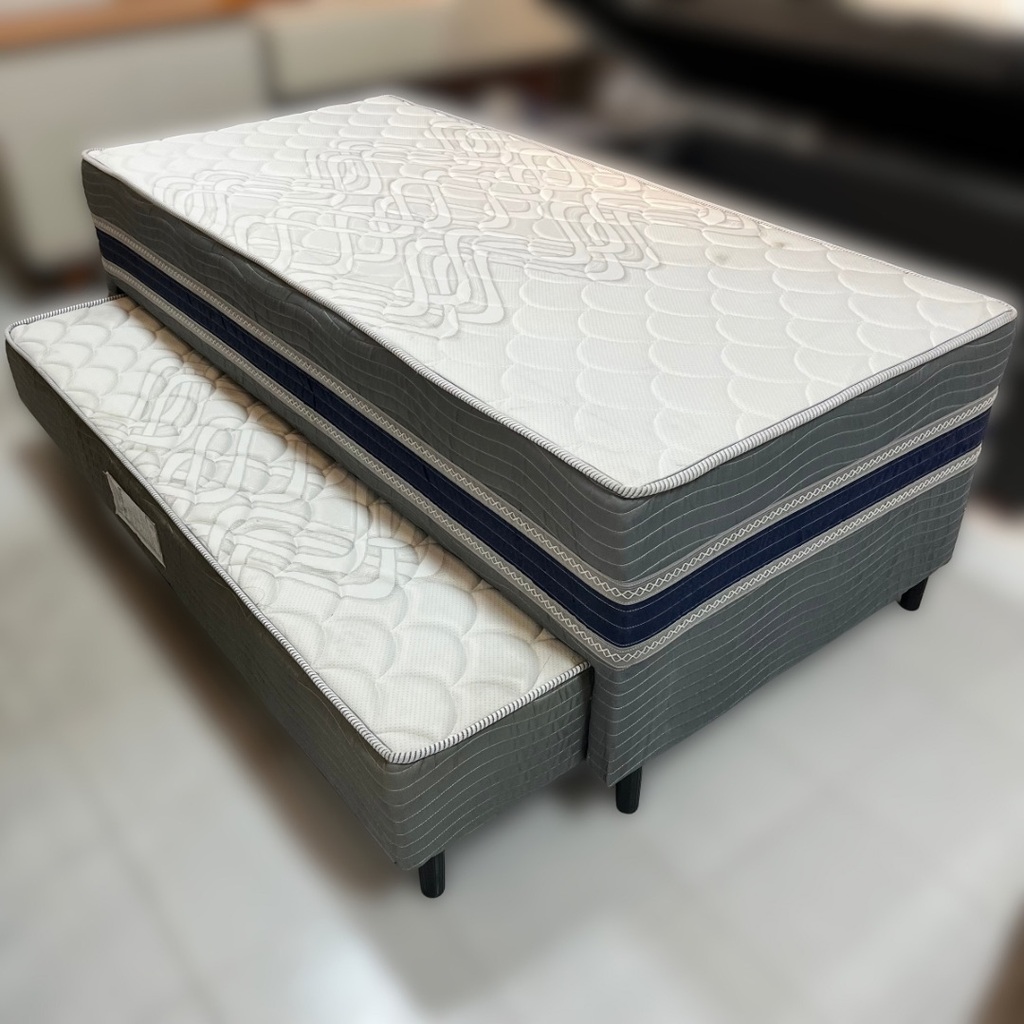 A cama auxiliar possui espuma D28, oferecendo firmeza e conforto na medida certa.