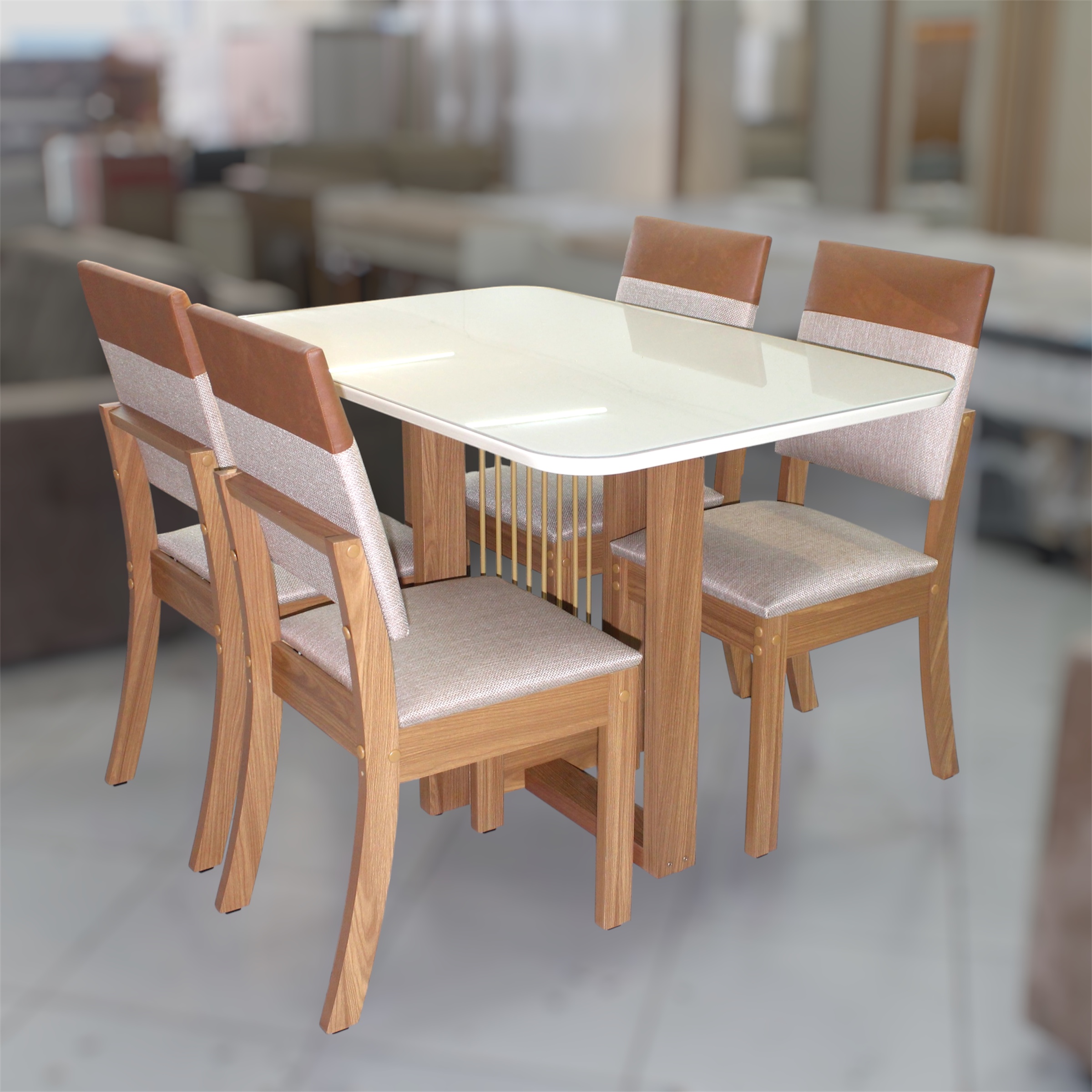 Transforme sua sala de jantar com o Conjunto de Mesa Nathalie com 4 Cadeiras Mila, uma combinação perfeita entre design elegante, conforto e praticidade ✨