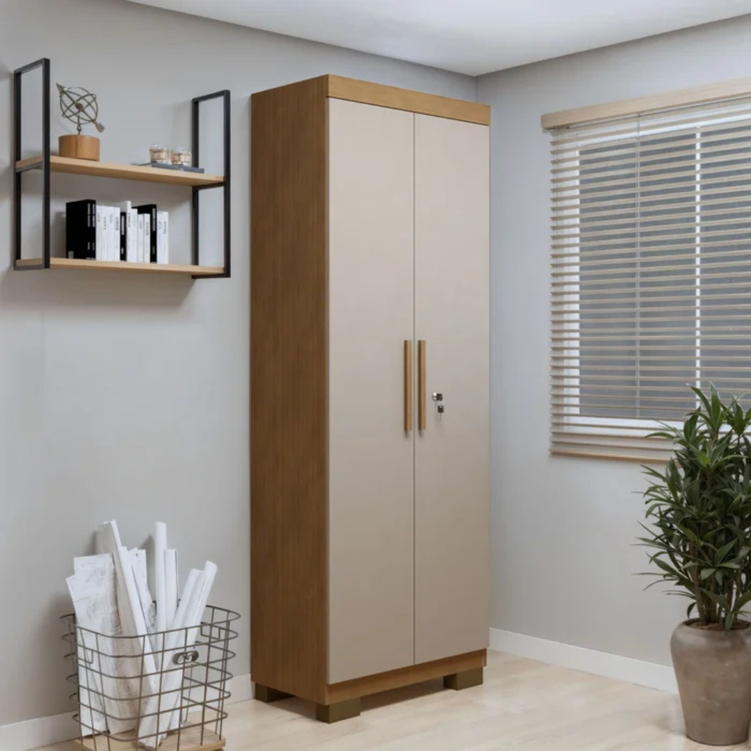 O grande diferencial é a porta com chave, que garante privacidade e proteção para os seus pertences. Além disso, possui pés de elevação, facilitando a limpeza do ambiente, e puxador em MDF que agrega mais estilo ao móvel.