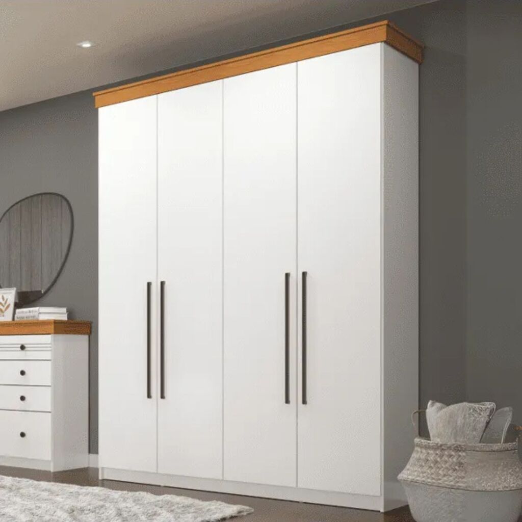 Com 4 portas de abrir e 2 gavetas espaçosas, ele oferece espaço interno bem distribuído para roupas, acessórios, malas e itens de cama. Além disso, você pode personalizar o estilo escolhendo entre dois tipos de puxadores.