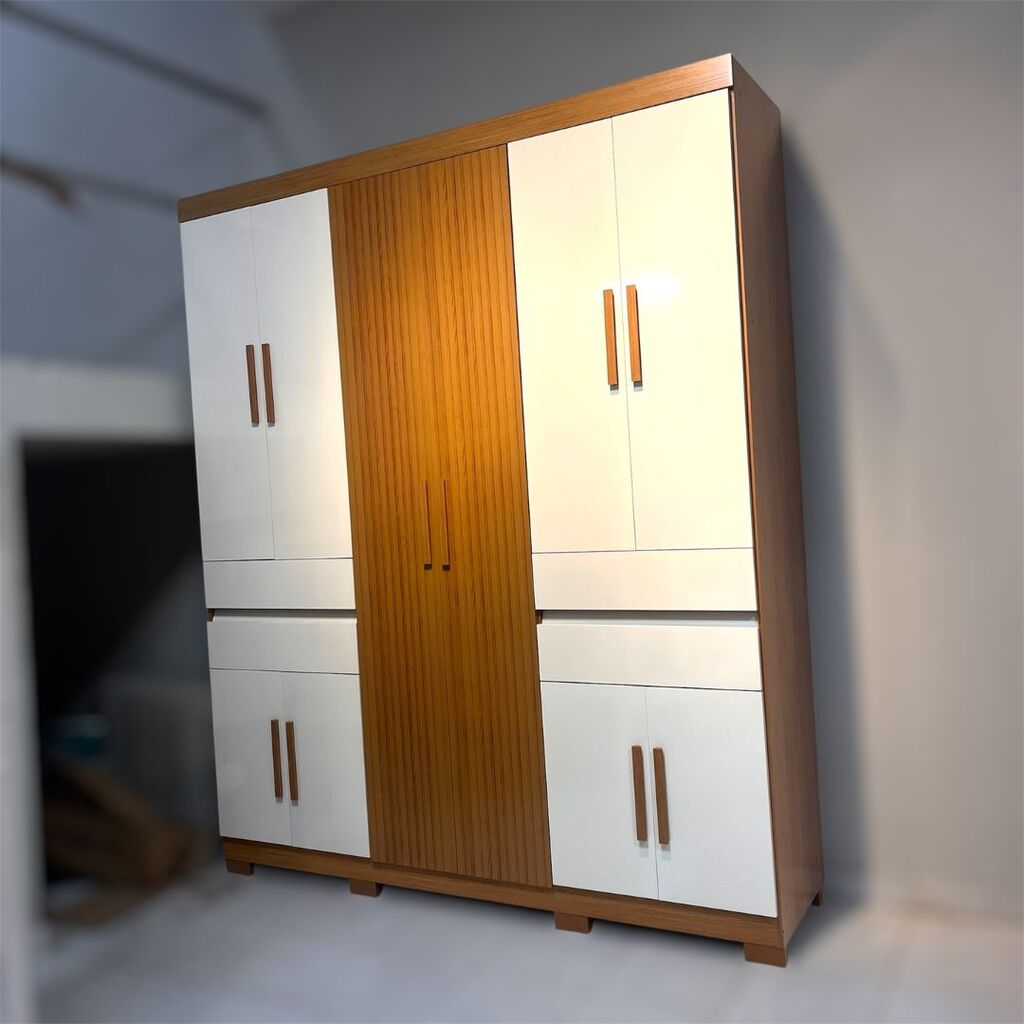 Conta com 10 portas espaçosas e 4 gavetas externas, oferecendo amplo espaço interno para guardar roupas, sapatos, roupas de cama e acessórios com total praticidade. Seu visual moderno com cores neutras e acabamento resistente garante um toque de estilo que combina com qualquer decoração. 💫